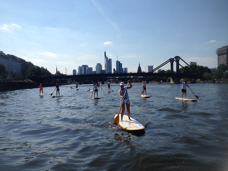 SUP-Grundkurs; Main SUP-Kurs frankfurter Skyline